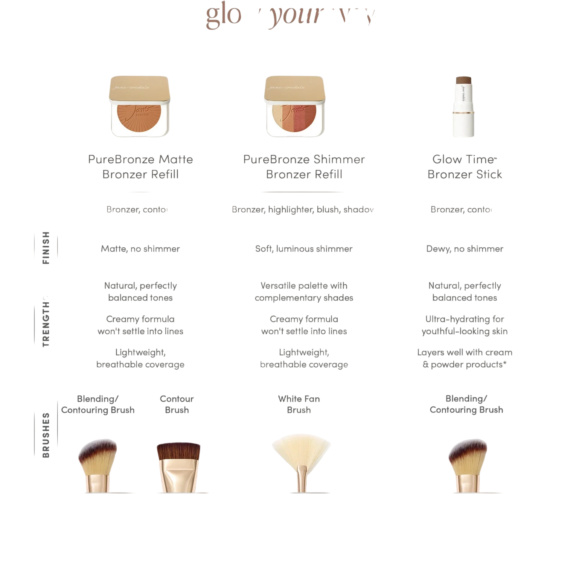 - Versatile bronze palette refill for a naturally radiant glow.